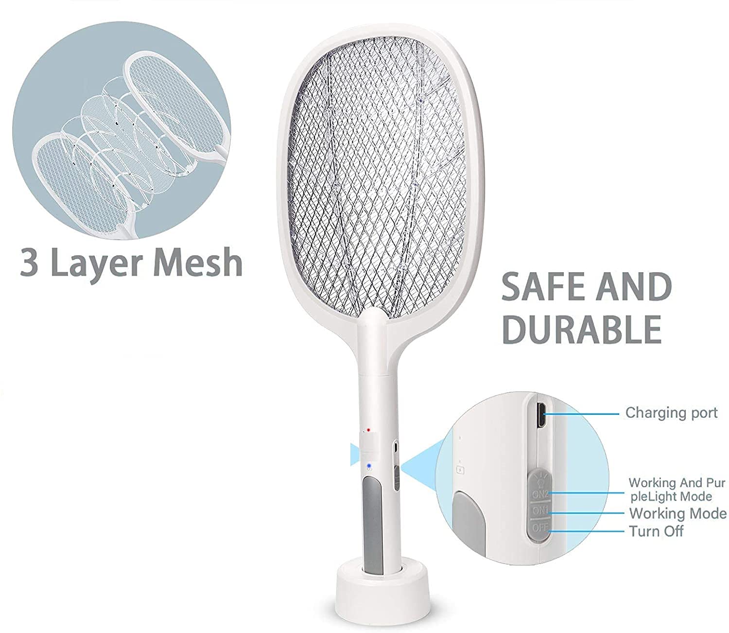 - Rechargeable Electric Mosquito Killer Racket with LED Flash Light.