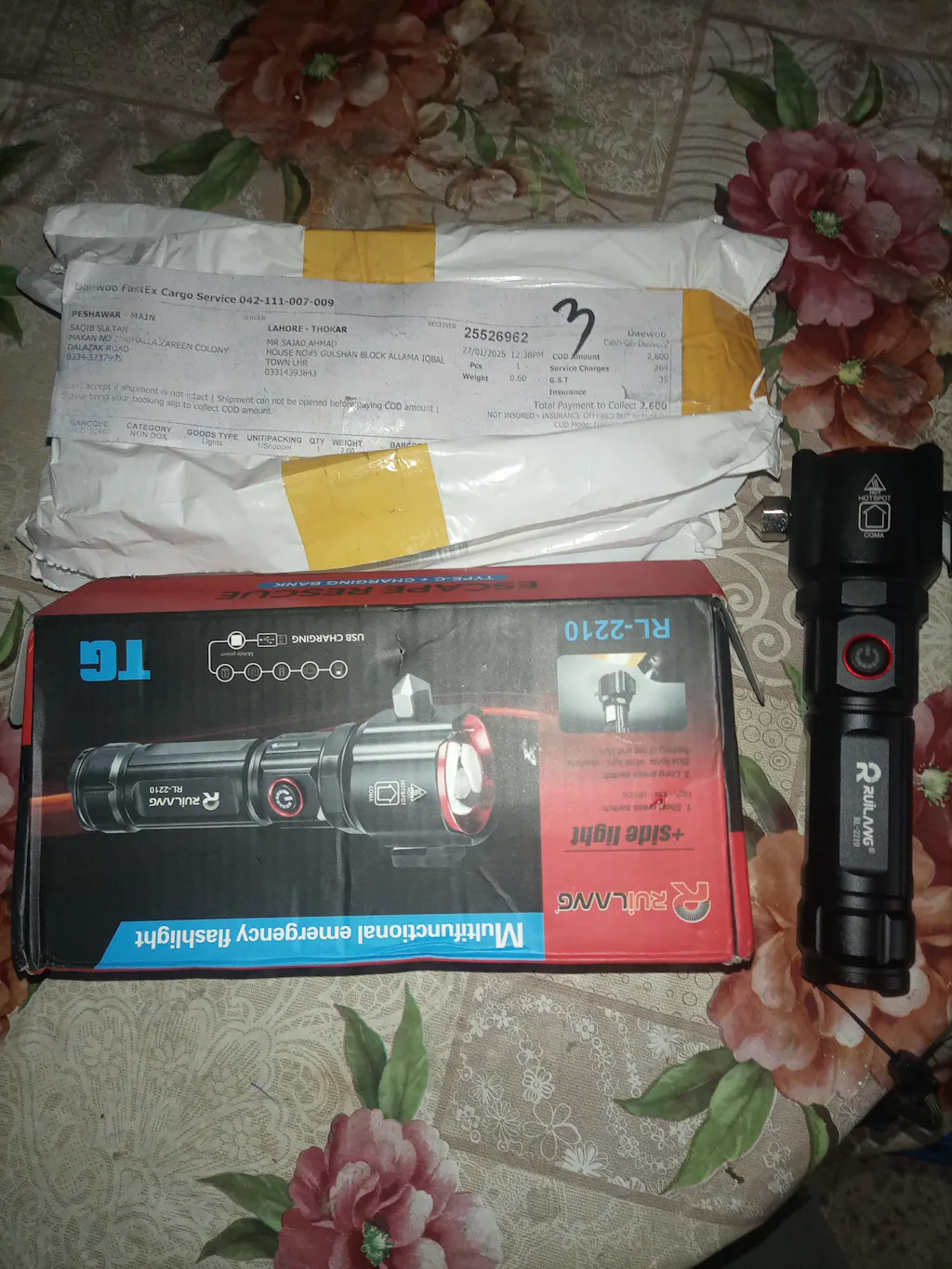 Taha Siddiqui I ordered a Ruilang RL 2210 from SaQiBuy . I am very satisfied with this supplier . I order 3 torches with 3 extra batteries . Quality and packaging both are fantastic , will order more things in future as he is trusted supplier. 100 % Recommended
